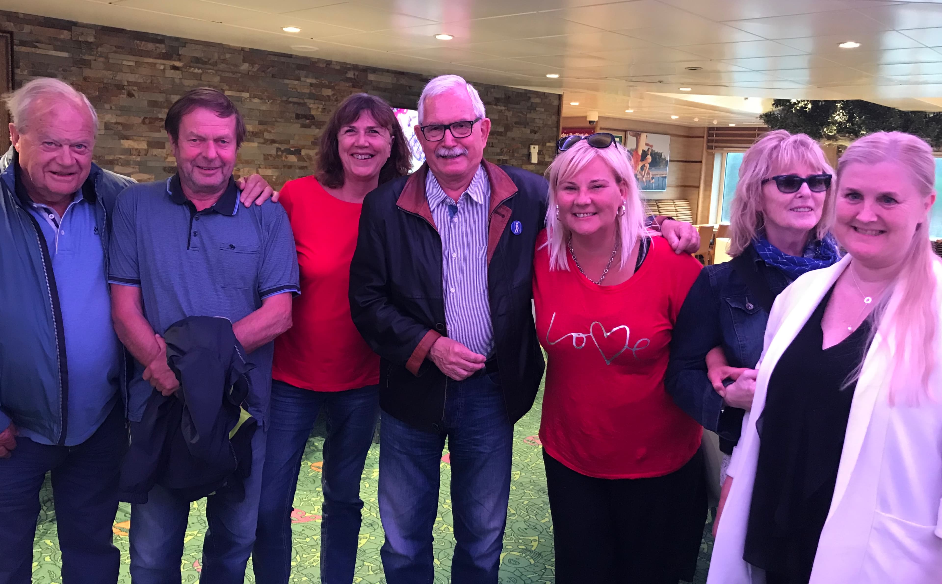 Styret samlet før Høie innførte 1 meter reglen. Fra v. Svenn Thore, Harald, Brit, Øivind, Cecilie, Aud og Wenche.