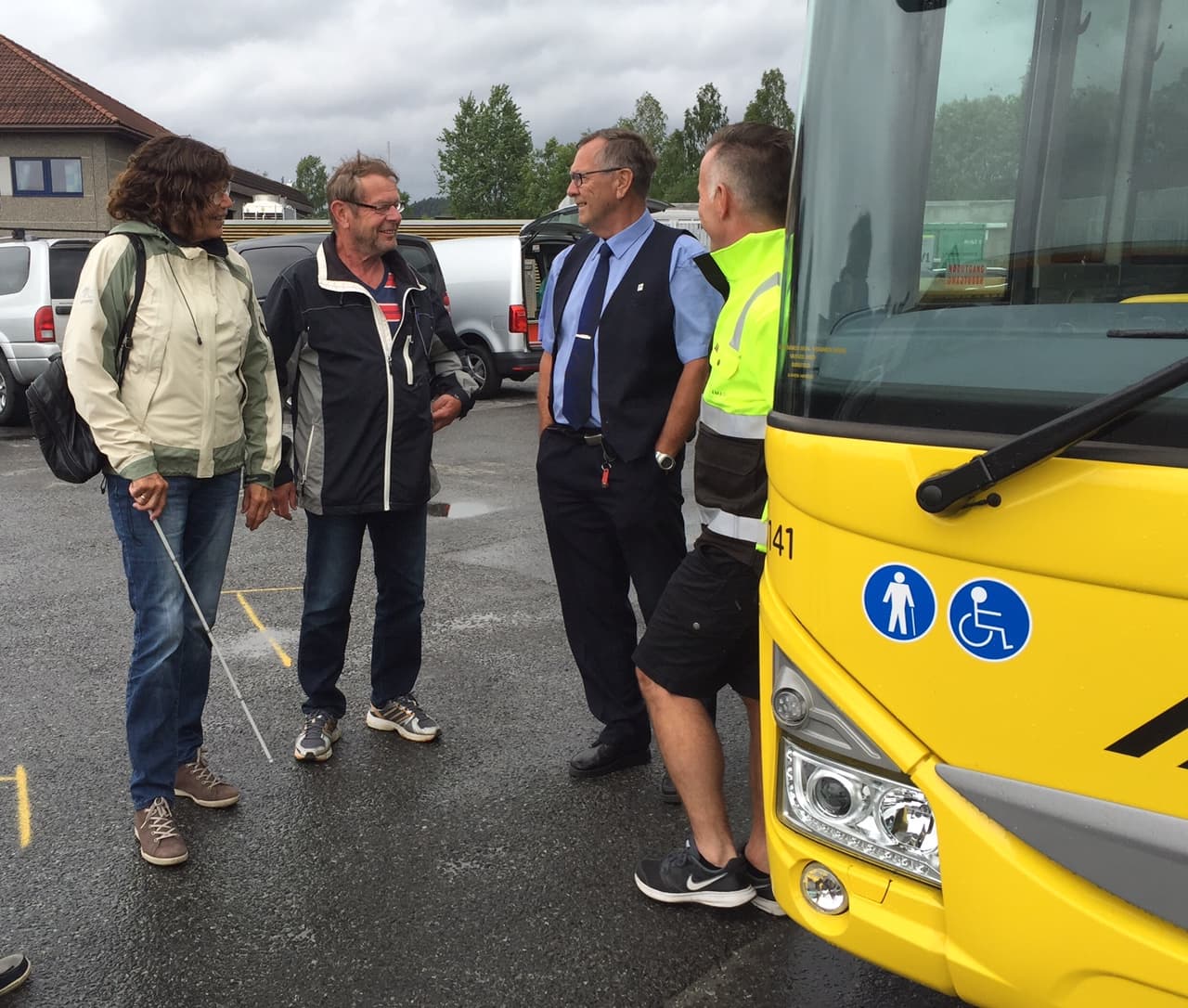 Onsdag ettermiddag møtte Blindeforbundet i Telemark representanter fra Nettbuss Grenland og Telemark fylkeskommune i forbindelse med Synshemmedes aksjonsuke der tema er kollektivtrafikk og tilgjenglighet. Sammen hadde de befaring av de nye bussene som har blitt knall gule. Det er bra avslutter Eikehaug, da blir de enklere å se, for oss som er svaksynte.