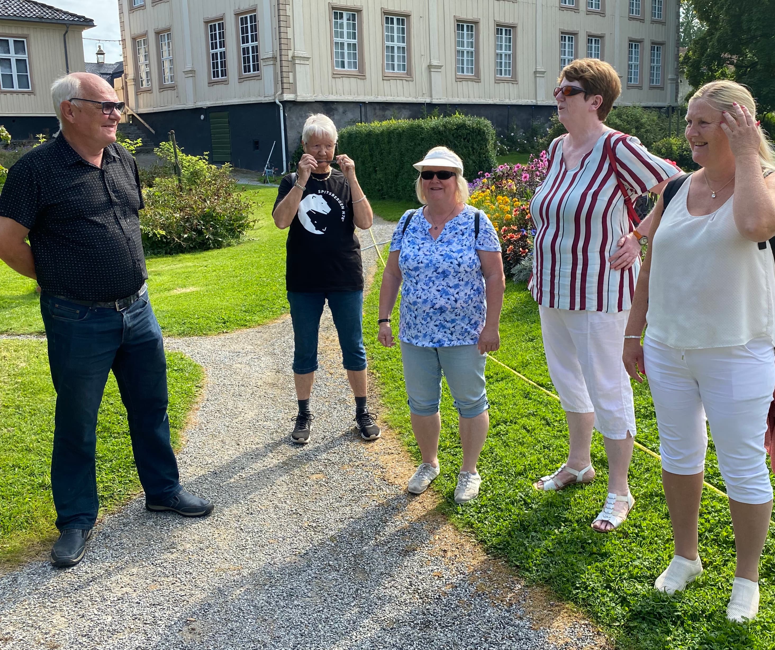 Blindeforbundet hadde en koselig rusletur i Skien sist tirsdag. Turen startet på Handelstorget, gikk videre til rådhusplassen, så opp Brekketrappa til Brekkeparken. Her ble det en god pause med en kaffekopp og litt å bite i.