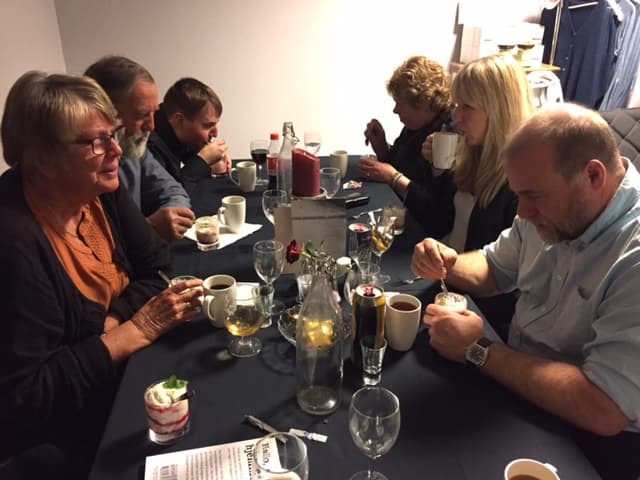 Her sitter noen av de som møtte på julemøte til Notodden lokallag. Fra venstre Ruth, Willy, Steinar, Bjørg og Øyvind.