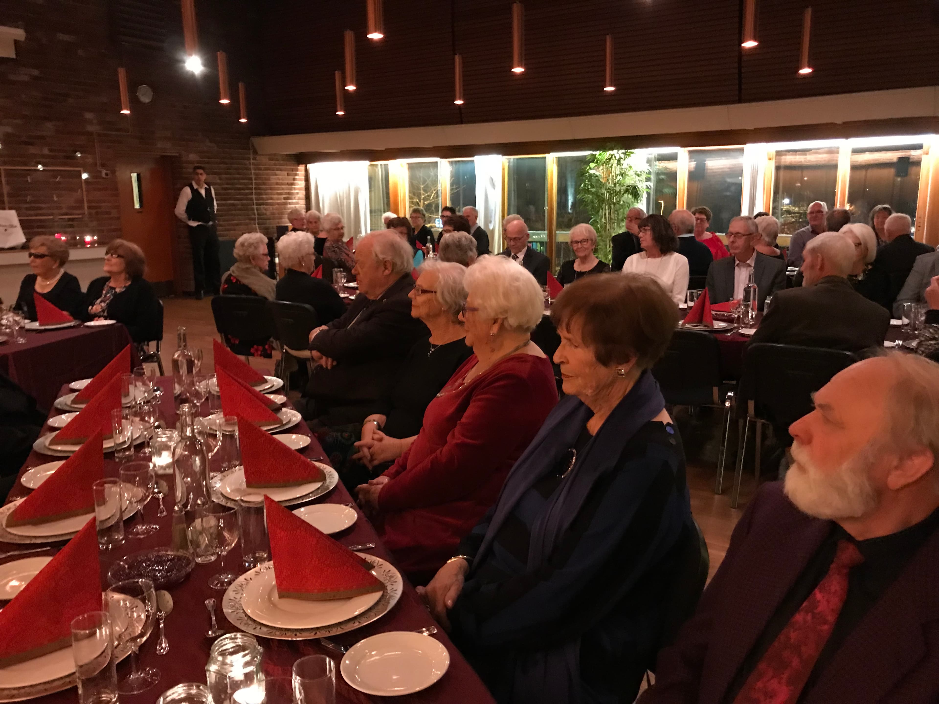Julemøte med festkledde deltakere i Grenland lokallag.