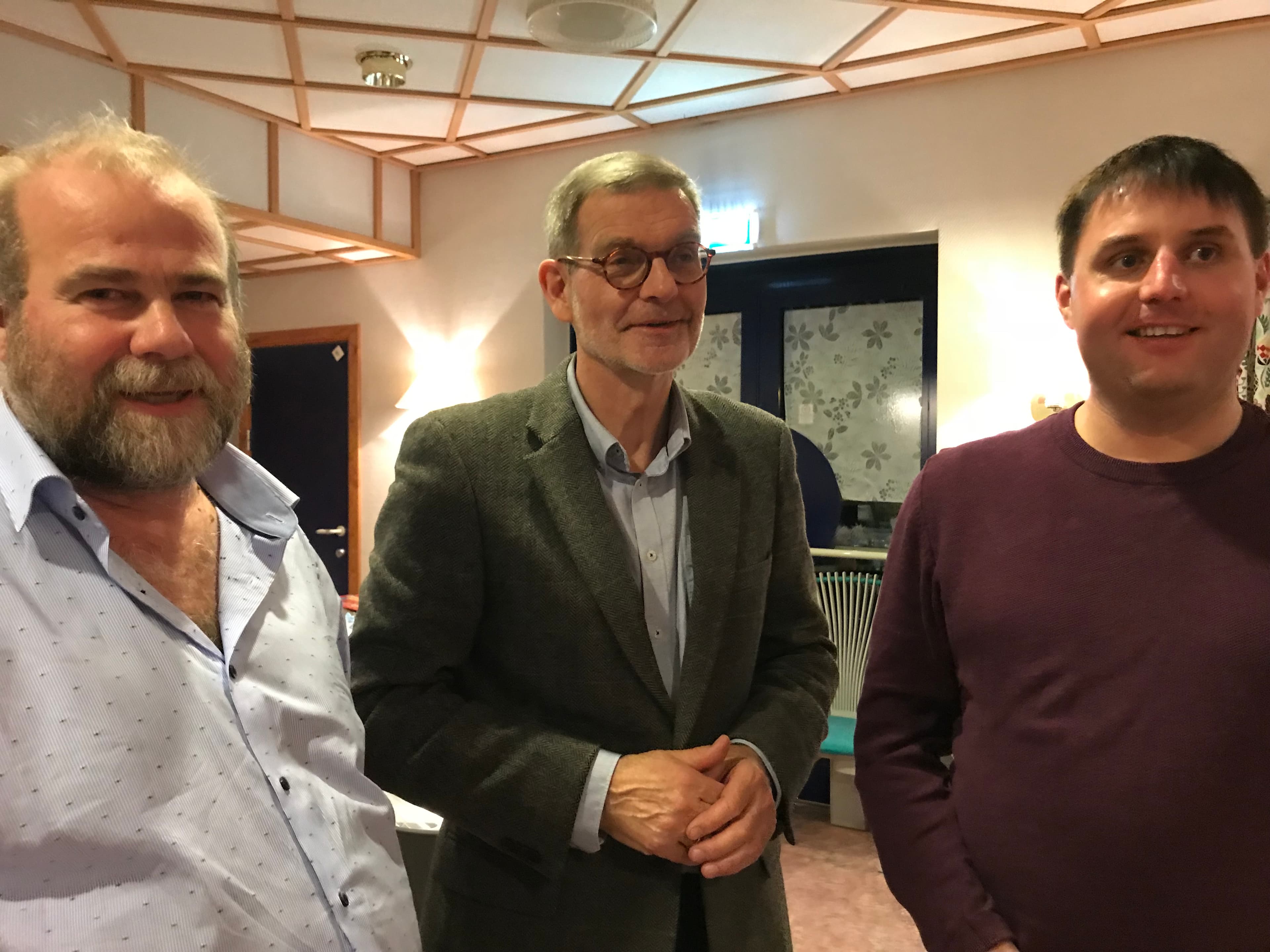 Fra venstre, Øyvind Nesthus, nestleder i lokallaget, Knut Duesund fra fylke og leder av lokallaget Steinar Kittilsen.