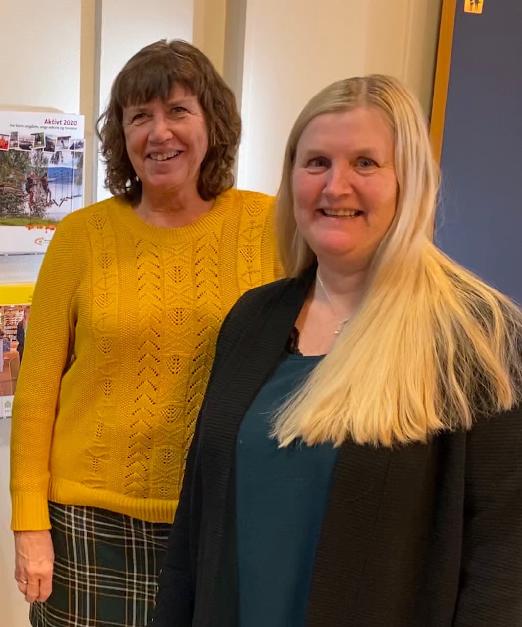 På bildet ser vi Brit B Eikehaug som er vara til sentralstyret i Blindeforbundet og Wenche Odden som er leder av fylkeslaget i Telemark, begge er med på å ringe til medlemmene våre.