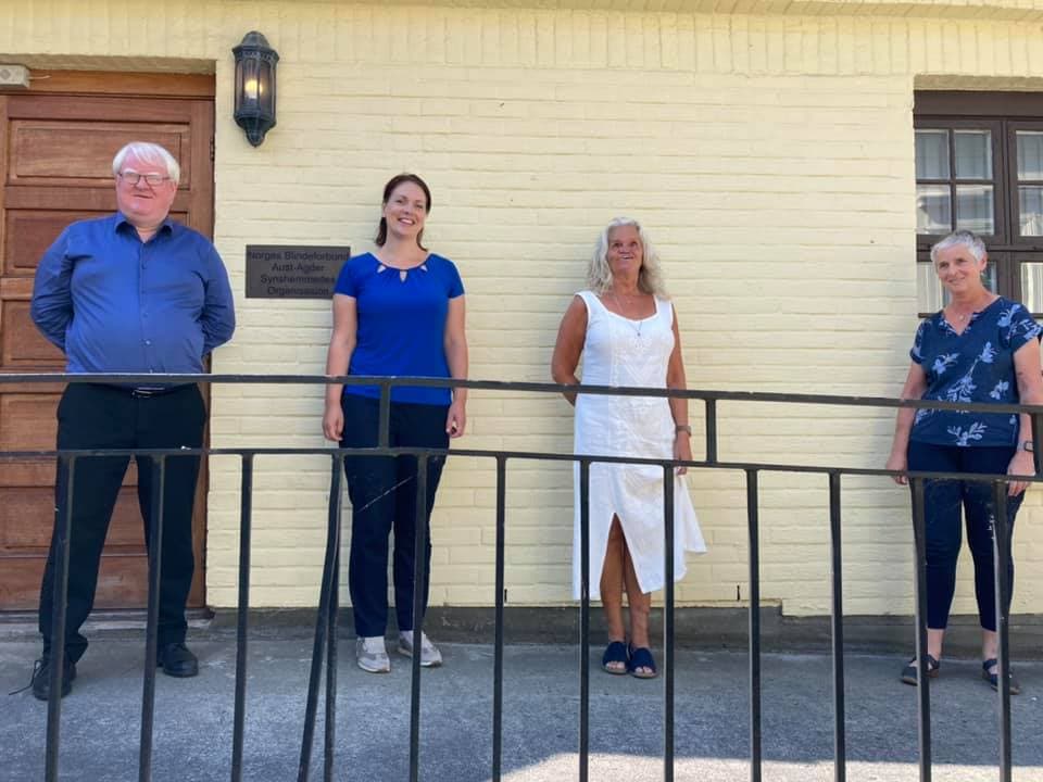 Bilde tatt etter møte i august: Fra Venstre: Forbundsleder Norges Blindeforbund Terje Andrè Olsen, Stortingsrepresentant Åshild Bruun-Gundersen (FrP), nestleder i Norges Blindeforbund Aust-Agder Rita Vindholmen, nestleder i Norges Blindeforbund Vest-Agder Astrid Hopland Svendsen