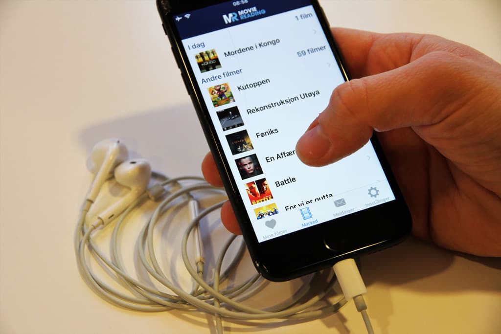 Alt synshemmede trenger for å gå på kino er det som er på bildet: En smarttelefon og ørepropper.